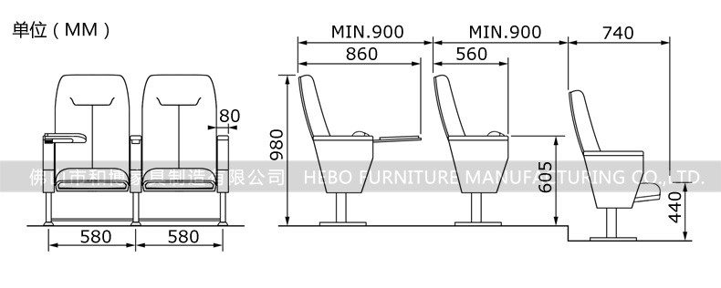 3、座、背胶壳:采用优质PP(聚丙烯)多元素复合材料经模具压铸成型,厚度为3~6mm,座胶壳带消音孔,有效去除环境噪音。