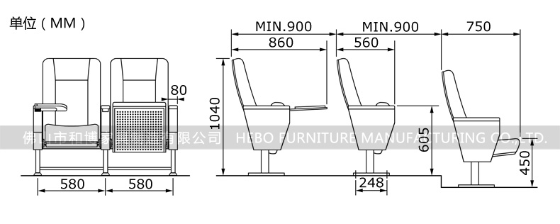 8、脚架:扶手框、脚掌采用2.0mm优质冷轧钢板,脚管采用80×40×T1.5优质方管,经模具冲压焊接成型,并经打磨、抛光、除锈、磷化、静电喷粉、高温焗炉等多道工序处理。