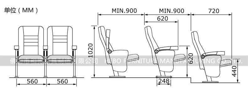 2、座、背内板:采用优质夹板经模具压弯成型。背板厚度不小于10mm,座板厚度不小于12mm。