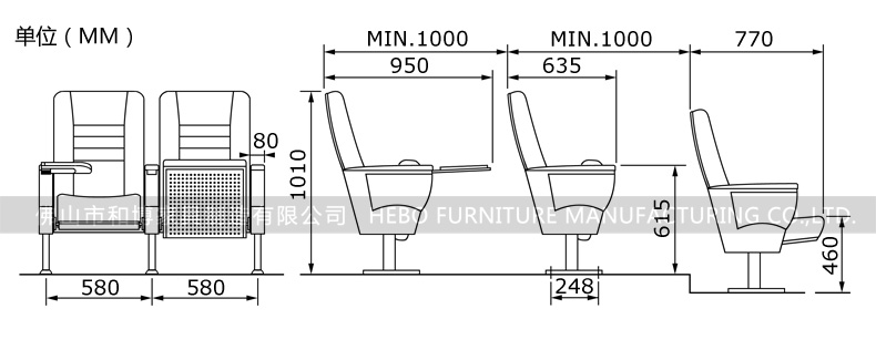 8、脚架:扶手框、脚掌采用2.0mm优质冷轧钢板,脚管采用80×40×T1.5优质方管,经模具冲压焊接成型,并经打磨、抛光、除锈、磷化、静电喷粉、高温焗炉等多道工序处理。
