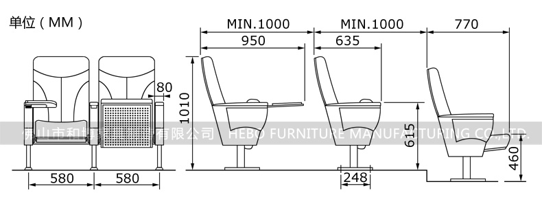 8、脚架:扶手框、脚掌采用2.0mm优质冷轧钢板,脚管采用80×40×T1.5优质方管,经模具冲压焊接成型,并经打磨、抛光、除锈、磷化、静电喷粉、高温焗炉等多道工序处理。